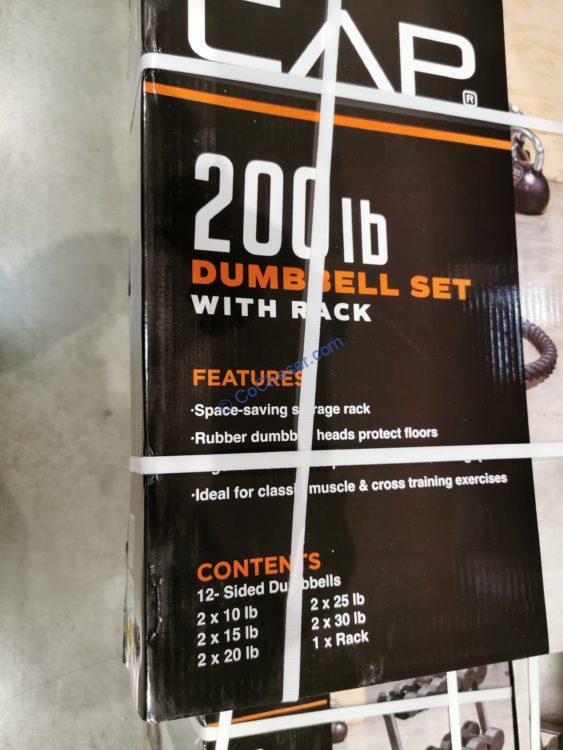 The cap 200 lb dumbbell set with rack is priced at 199 99.